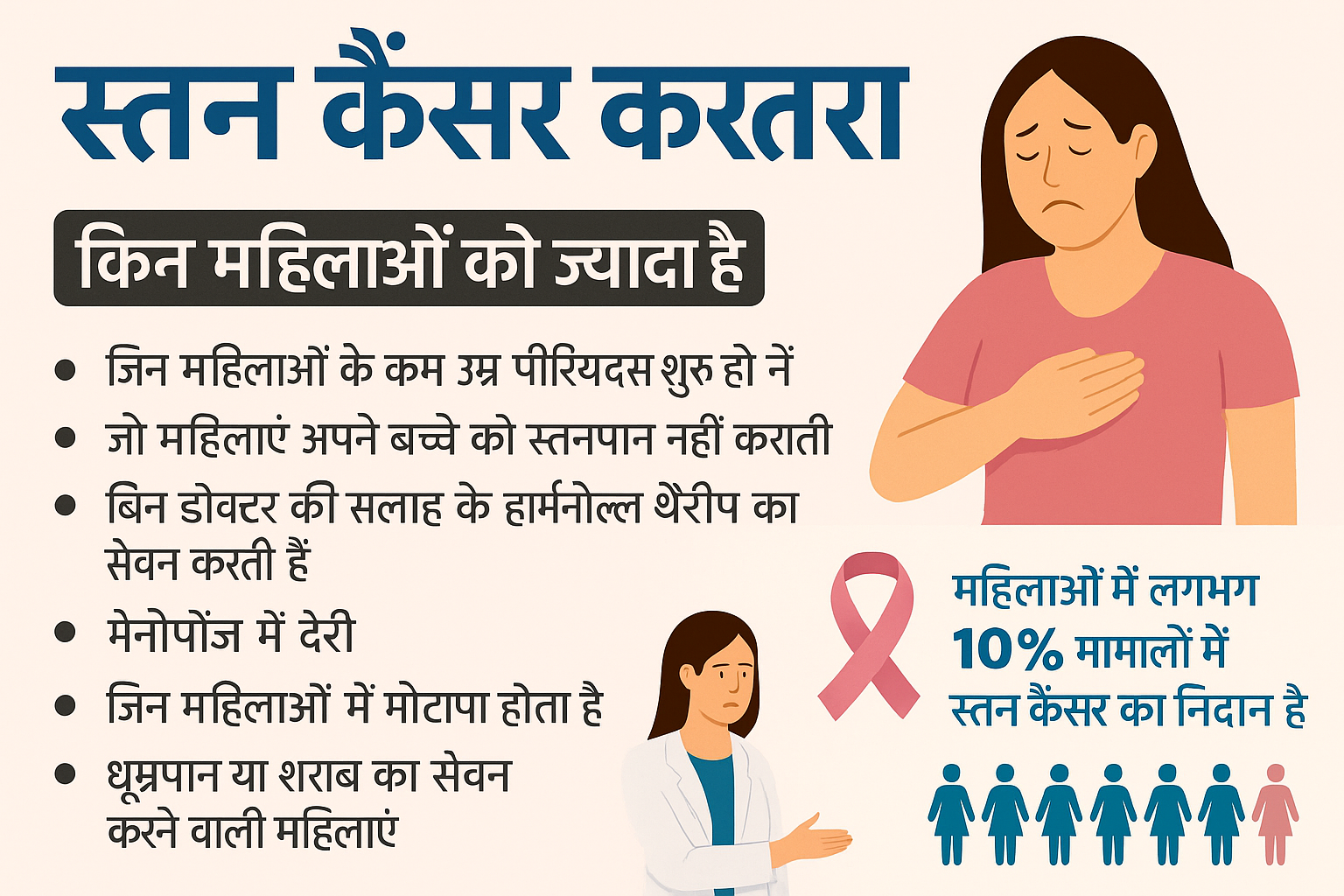 👉 साथ ही, 30 साल की उम्र के बाद गर्भावस्था और स्तनपान न कराना भी ब्रेस्ट कैंसर का खतरा बढ़ाता है।