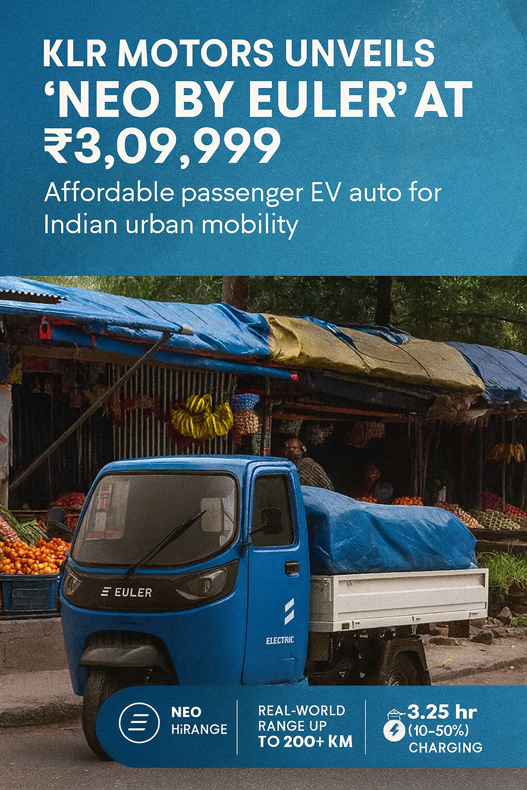 Euler Motors Launches ‘NEO by Euler’: Affordable Passenger EV Revolution at ₹3,09,999
