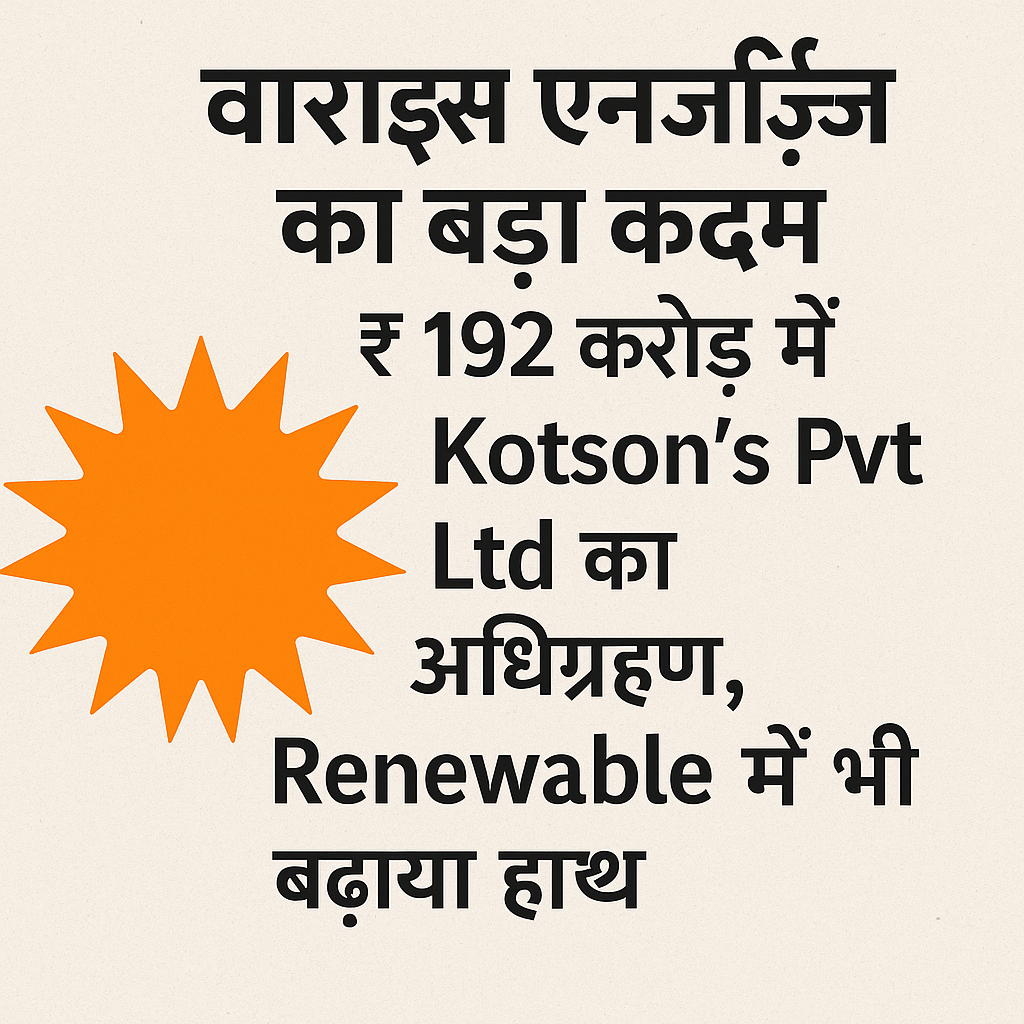 Waaree Energies ने घोषणा की है कि वह Kotson’s Private Limited (KPL) की 64% हिस्सेदारी खरीदेगी। इस डील की कुल कीमत ₹192 करोड़ तय की गई है।